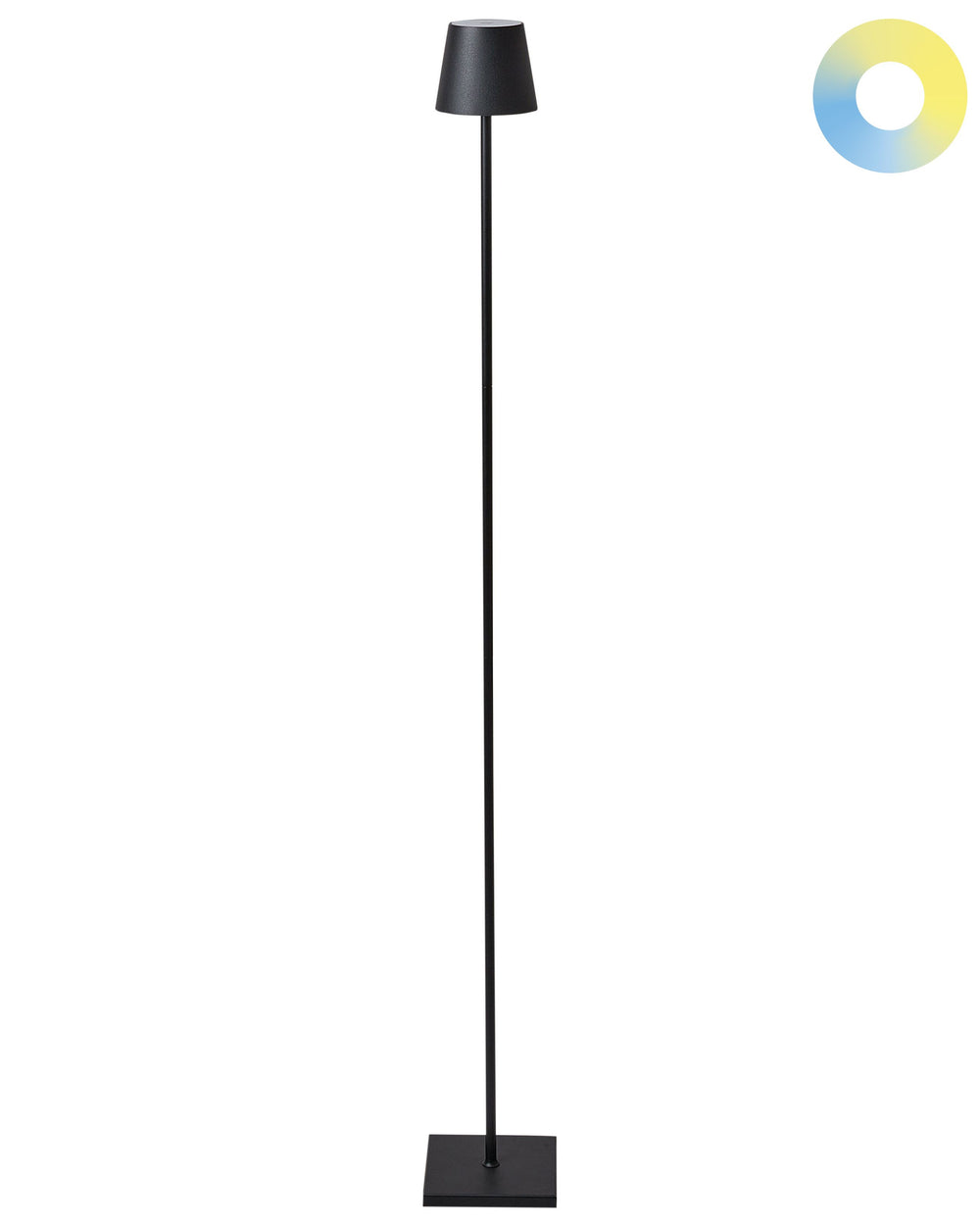 Light up your terrace or garden with this chic, slender floor lamp. Its simple silhouette complements both contemporary and classic decor, offering a subtle yet effective lighting solution. Featuring a touch switch, three modes of light temperature, and a USB charging port for added convenience, it works splendidly as ambient lighting. Perfect for setting the mood during cosy outdoor gatherings or quiet nights at home.