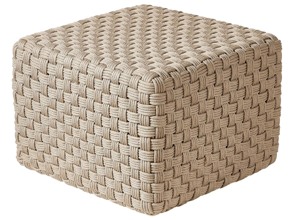 Garden Pouffe Taupe Synthetic Material 50 x 50 cm Outdoor Ottoman Handwoven Boho Style Beliani