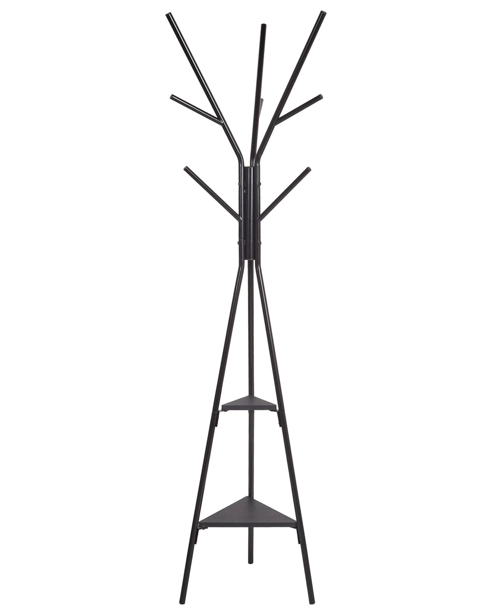 Coat Stand Black Metal 181 cm with Shelves Freestanding Jacket Rack Industrial Modern Decorative Accent Piece Hallway Accessories Beliani