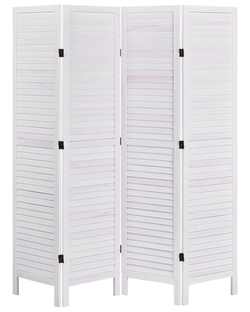 4 Panel Room Divider Off-White Poplar Wood Walls Weave Retro Style Beliani