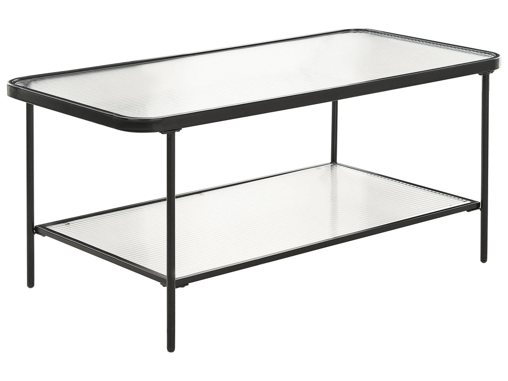 Coffee Table Black Fluted Tempered Glass Iron 100 x 51 cm Frame with Shelf Retro Rectangular Living Room Beliani is backordered and will ship as soon as it is back in stock.