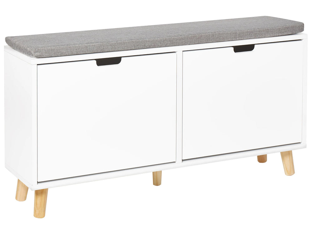 Shoe Storage Cabinet White MDF 2 Compartments with Cushion on Top Minimalist Scandinavian Style Design Hallway Beliani