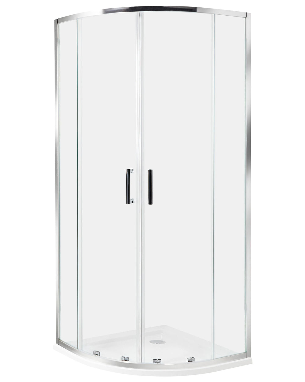 Shower Enclosure Silver Tempered Glass Aluminium Frame Double Door Half Round 80 x 80 x 185cm Modern Design Beliani