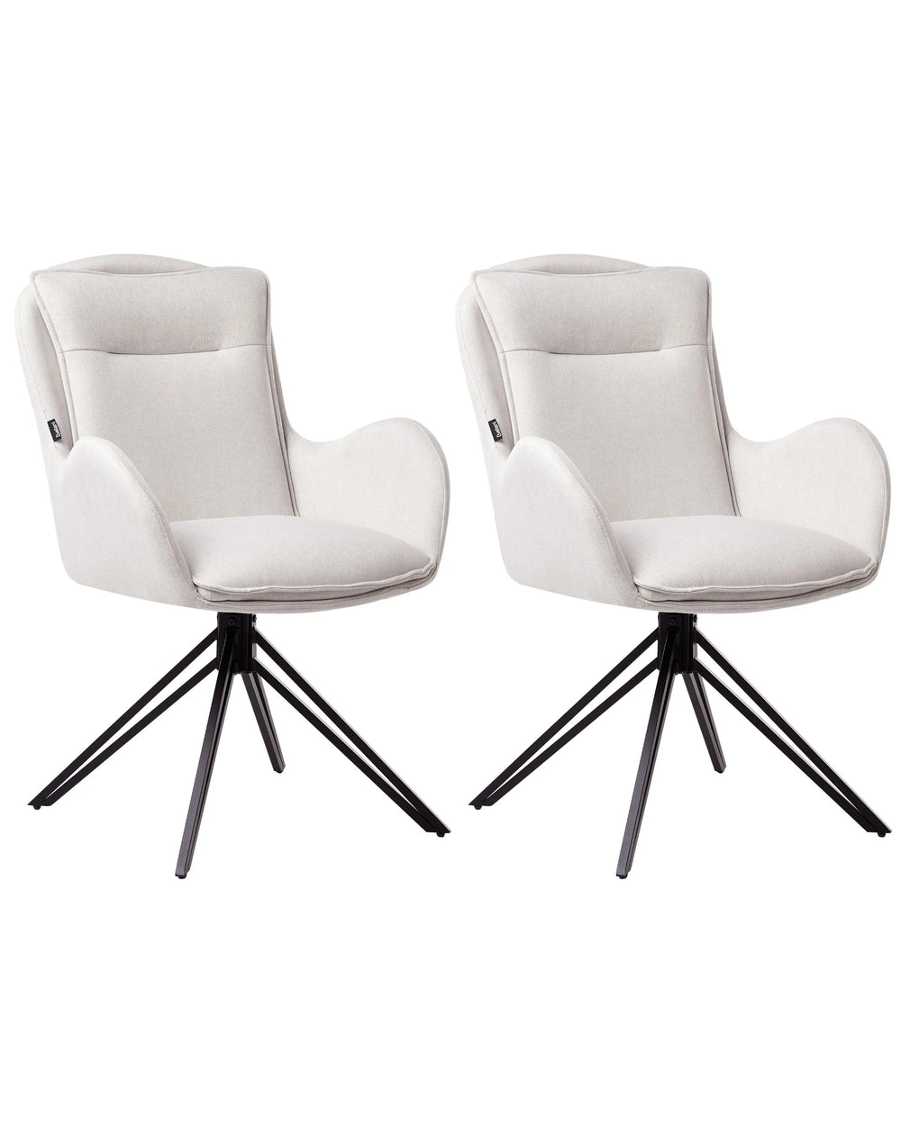 Set of 2 Dining Swivel Chairs Light Beige Fabric with Arms Quilted Backrest Black Metal Legs Retro Transitional Beliani
