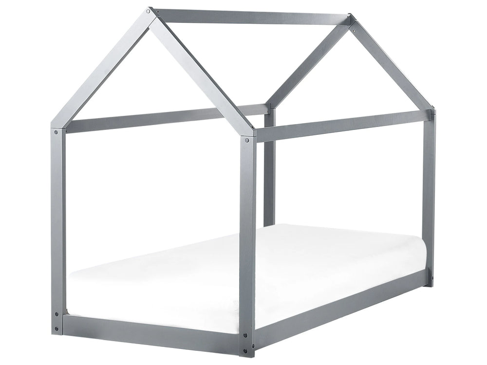 Kids House Bed Grey Pine Wood EU Single Size 3ft with Slatted Frame Bed for Toddler Beliani