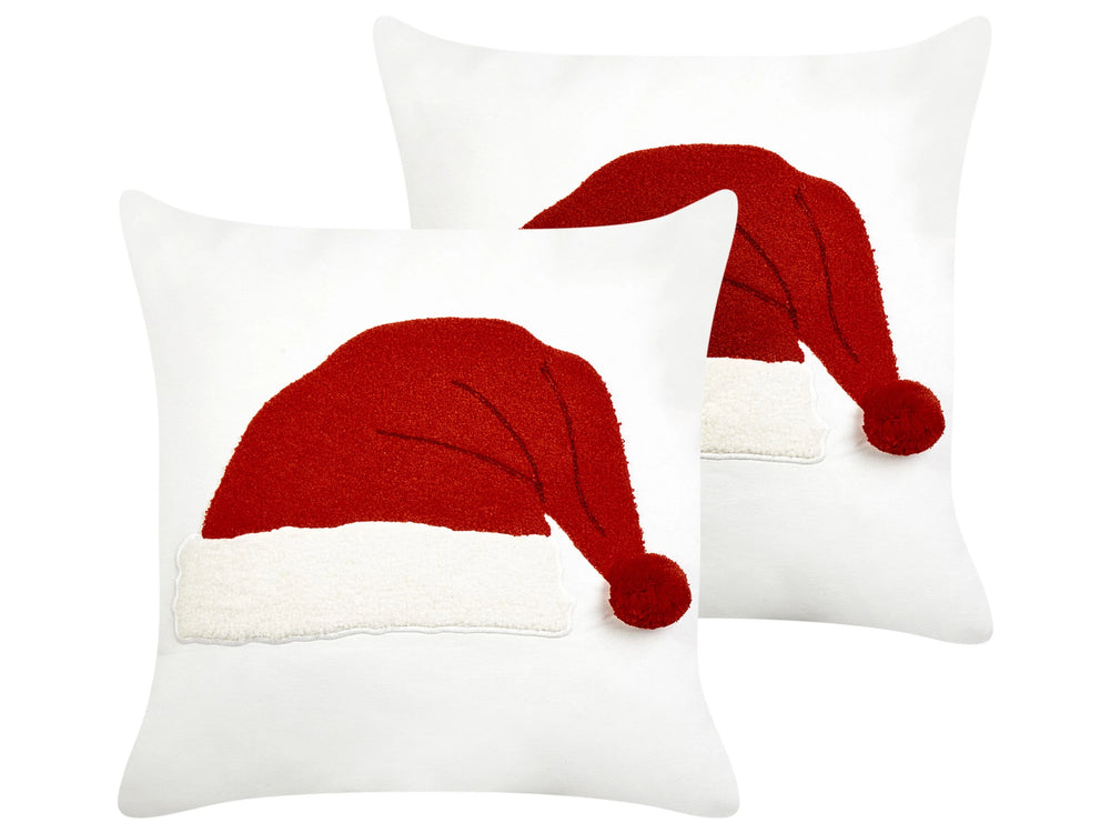 Set of 2 Scatter Cushions White Fabric Cotton Christmas Motif 45 x 45 cm Decoration Accessory Beliani is backordered and will ship as soon as it is back in stock.