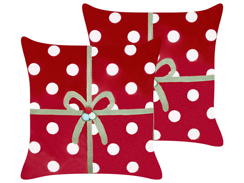 Set of 2 Scatter Cushions Red Velvet Fabric Christmas Present Pattern 45 x 45 cm Decoration Accessory Beliani