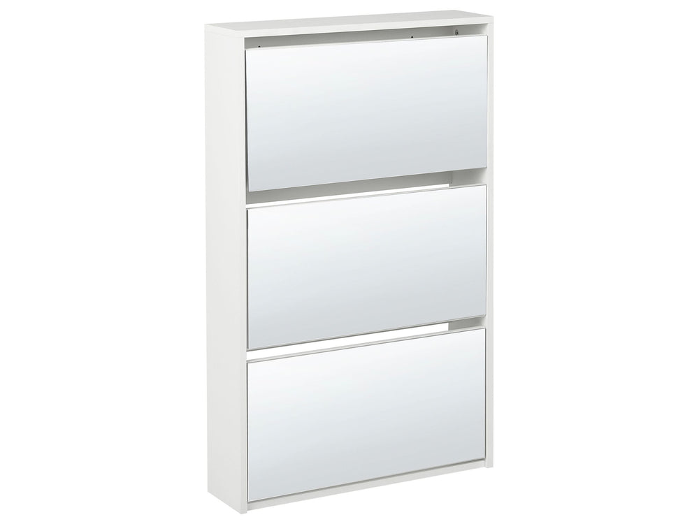 Shoe Storage Cabinet White MDF Frame Mirror Fronts 3 Compartments Modern Design Hallway Beliani