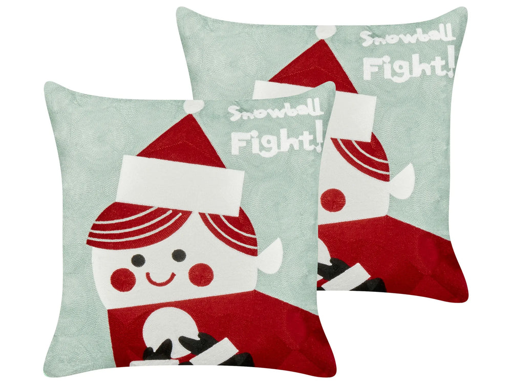 Set of 2 Scatter Cushions Red and Green Fabric Cotton Christmas Motif 45 x 45 cm Decoration Accessory Beliani