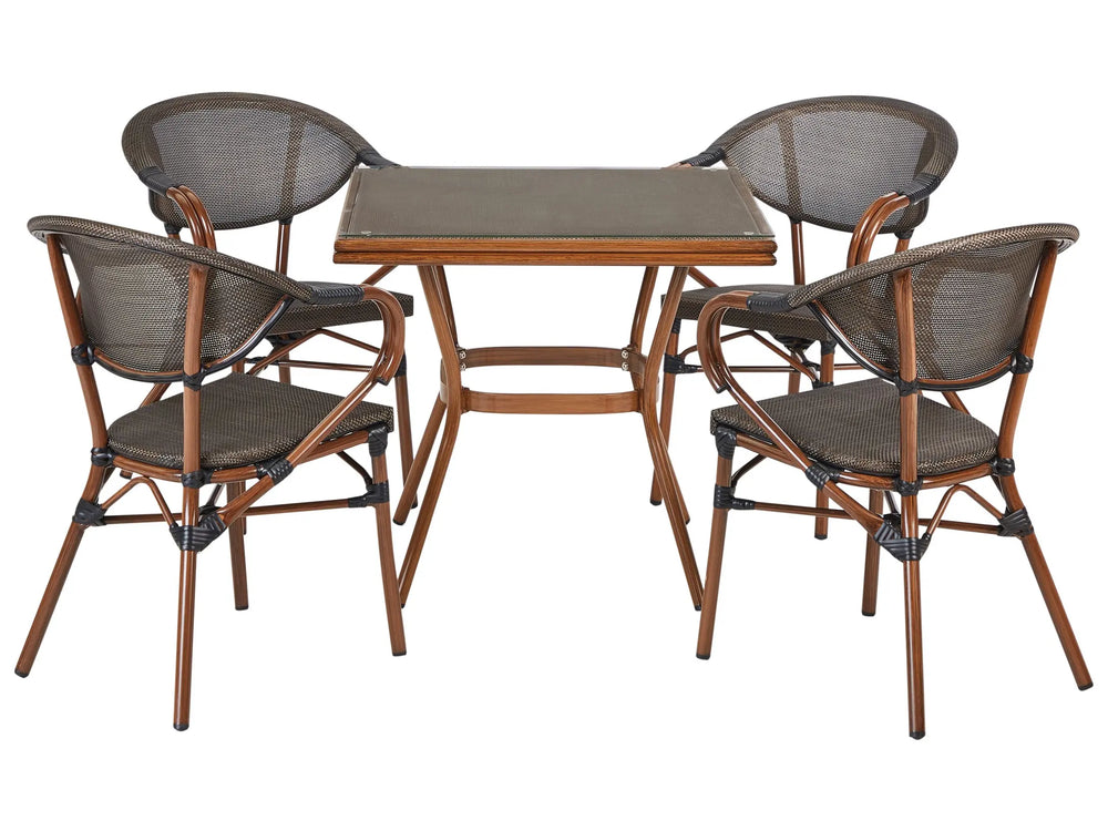 4 Seater Garden Dining Set Dark Wood Aluminium Frame Square Table and Grey Stacking Chairs Beliani
