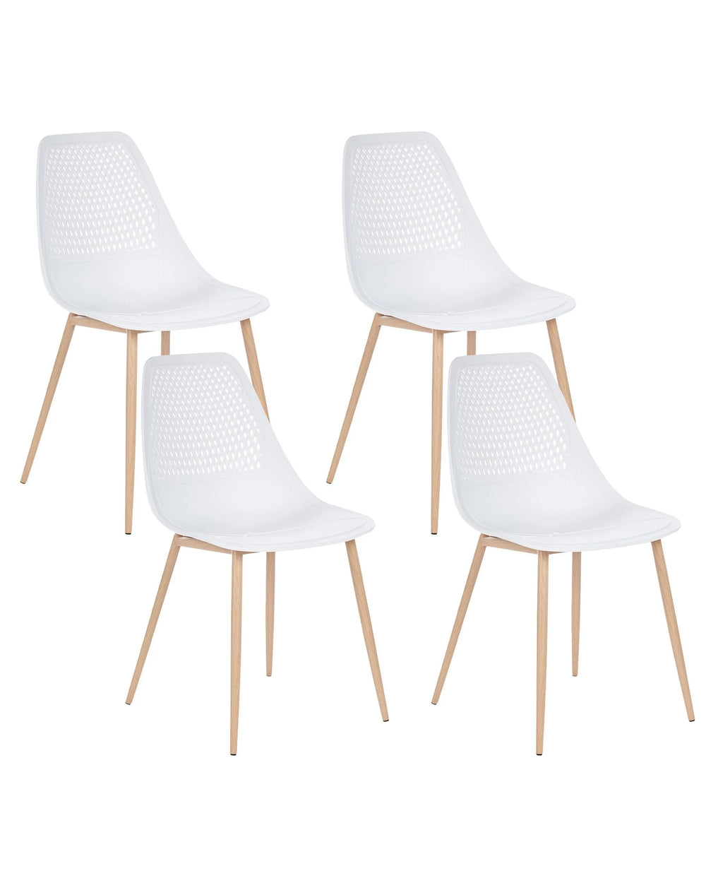 Set of 4 Dining Chairs White Syntehtic Seat Metal Legs Modern Simple Minimalistic Seating Beliani