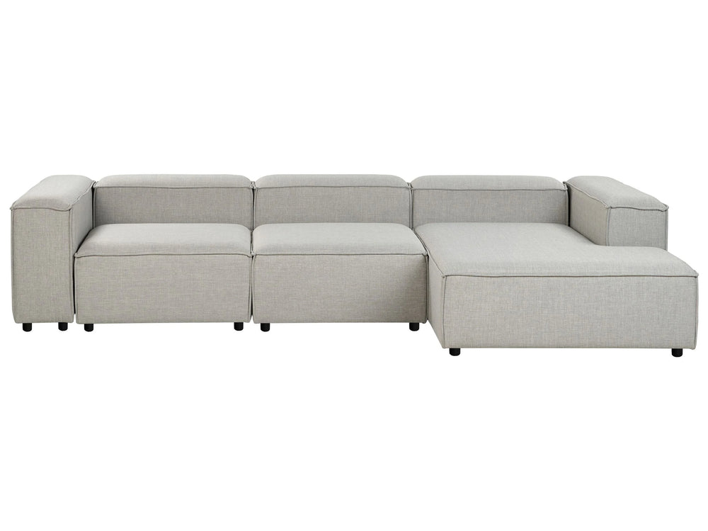 Modular Left Hand Sofa Light Grey Polyester 4 Seater Sectional Corner Sofa with Black Legs Modern Living Room Beliani is backordered and will ship as soon as it is back in stock.