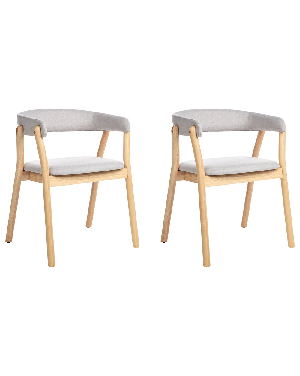 Set of 2 Dining Chairs Light Wood and Grey Polyester Fabric Rubberwood Legs Retro Traditional Style Beliani