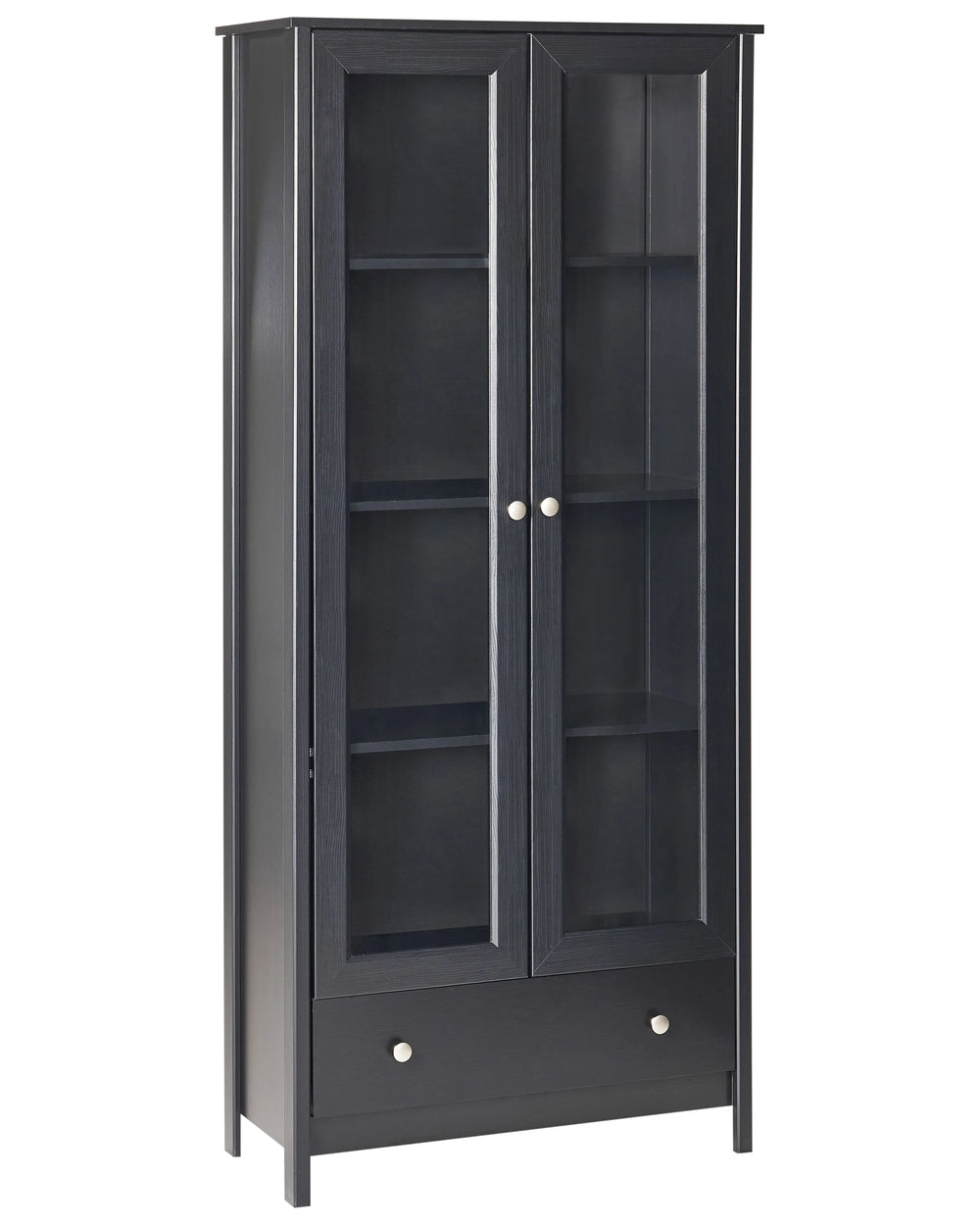 Decorative Cabinet Black Engineered Wood with a Glass Display Drawer Classic Scandinavian High Board Dining Room Living Room Beliani