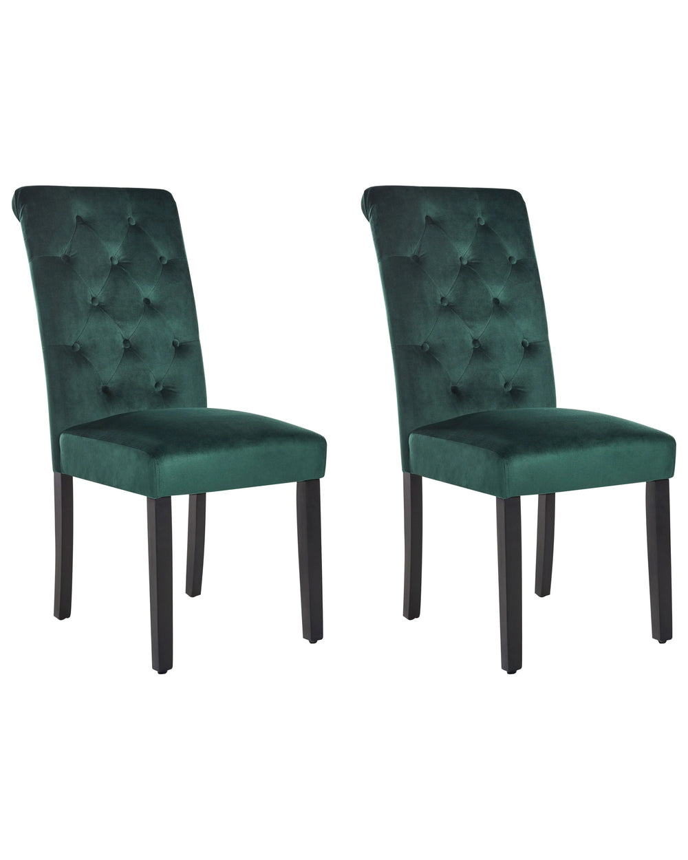 Set of 2 Dining Chairs Green Velvet Fabric Rubberwood Black Legs Button Tuft Dining Room Elegant Beliani