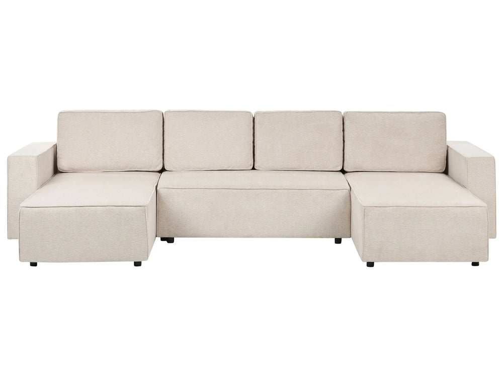 4 Seater U-Shaped Sofa Light Beige Polyester Fabric Upholstery Sleeping Function Storage Beliani