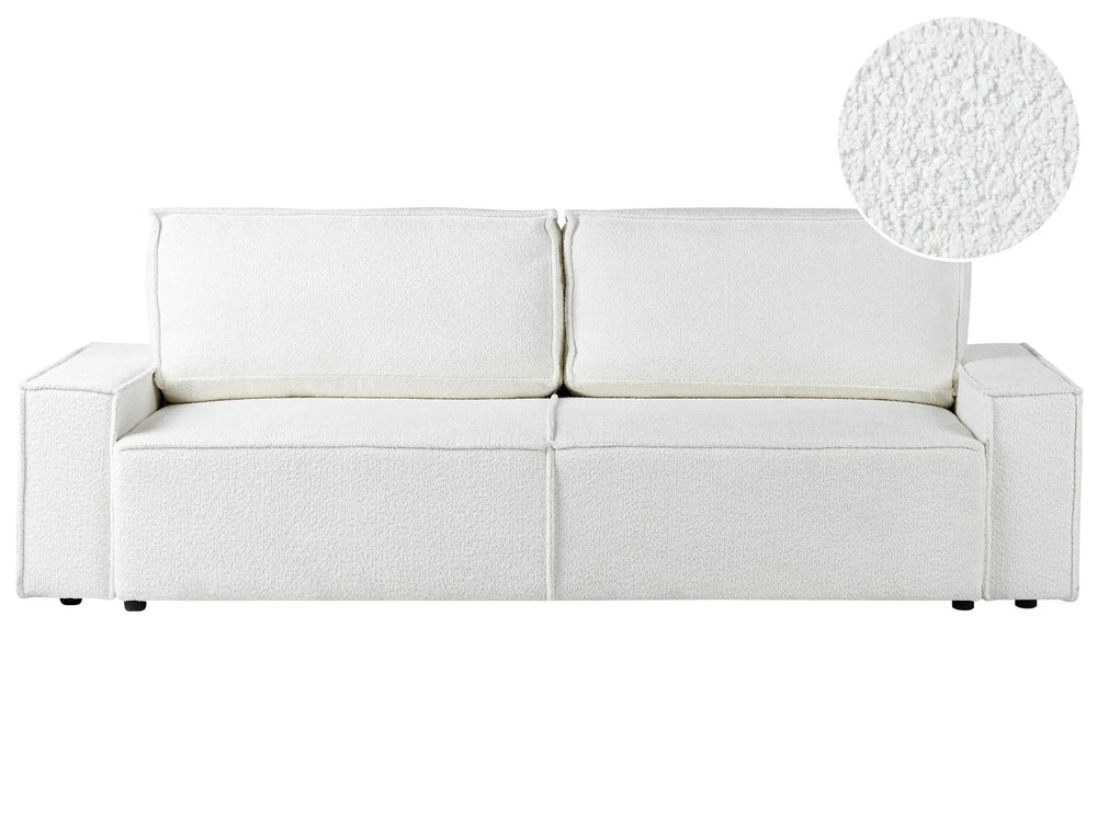 Sofa Bed Off-White Boucle Fabric Upholstered Sleeper Function with Storage Modern Living Room Beliani