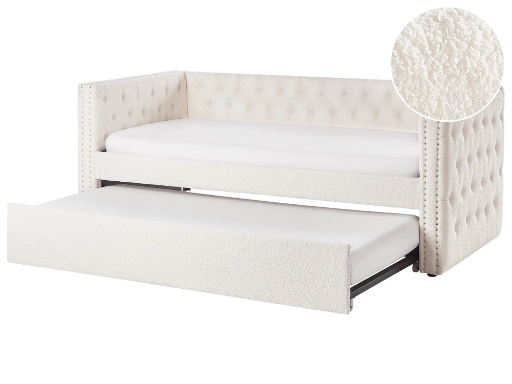 Trundle Bed Frame Off-White EU Boucle Single Size 3ft Slatted Frame Buttoned Nailhead Trims Glam Beliani