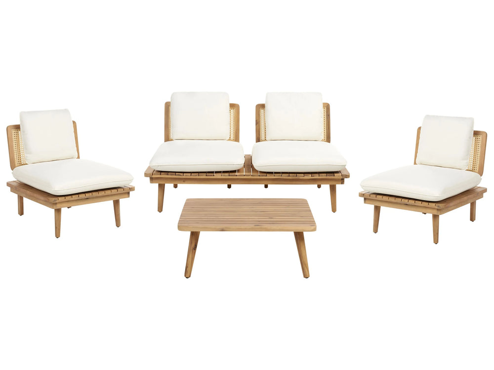 5 Piece Garden Set Light Wood with Light Beige Cushions Sofa Armchair Coffee Table 4 Seater Conversation Set Boho Beliani