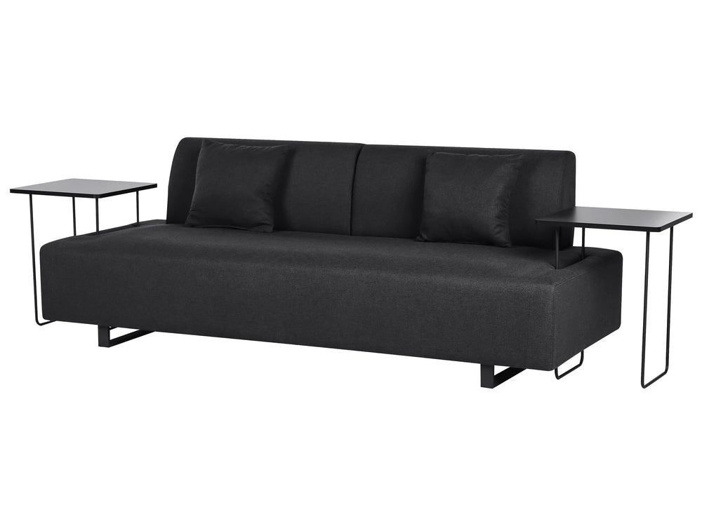 Sofa with Side Tables Black Polyester 3 Seater Removable Armrests and Backrest with 2 Side Tables Beliani