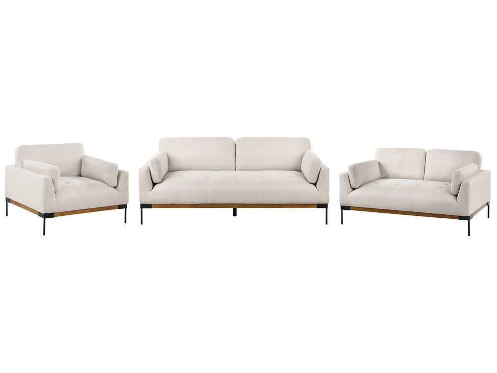Living Room Set Light Beige Polyester Fabric Iron Black Legs 3 Seater 2 Seater Armchair Upholstered Living Room Furniture Beliani