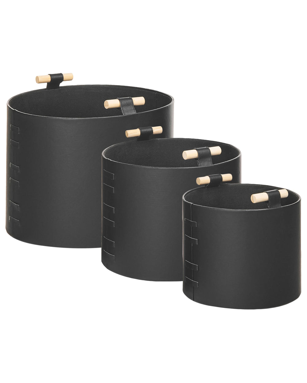 Set of 3 Storage Baskets Black Faux Leather Handmade with Handles Shelving Box Modern Minimalist Beliani