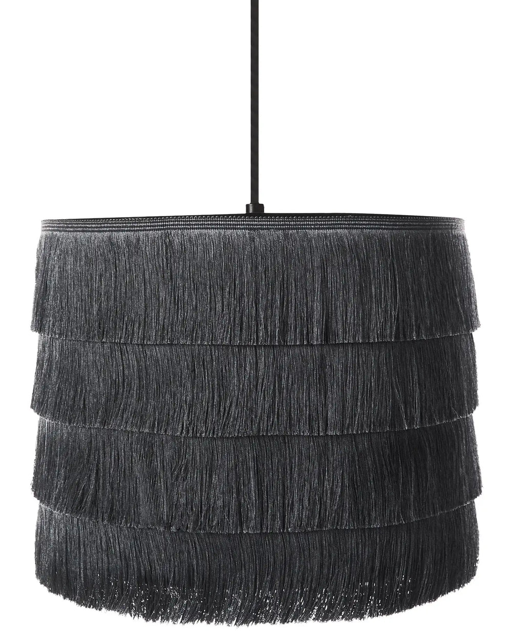Hanging Pendant Lamp Black Fabric Polyester Shade Fringed Modern Design Living Room Light Beliani