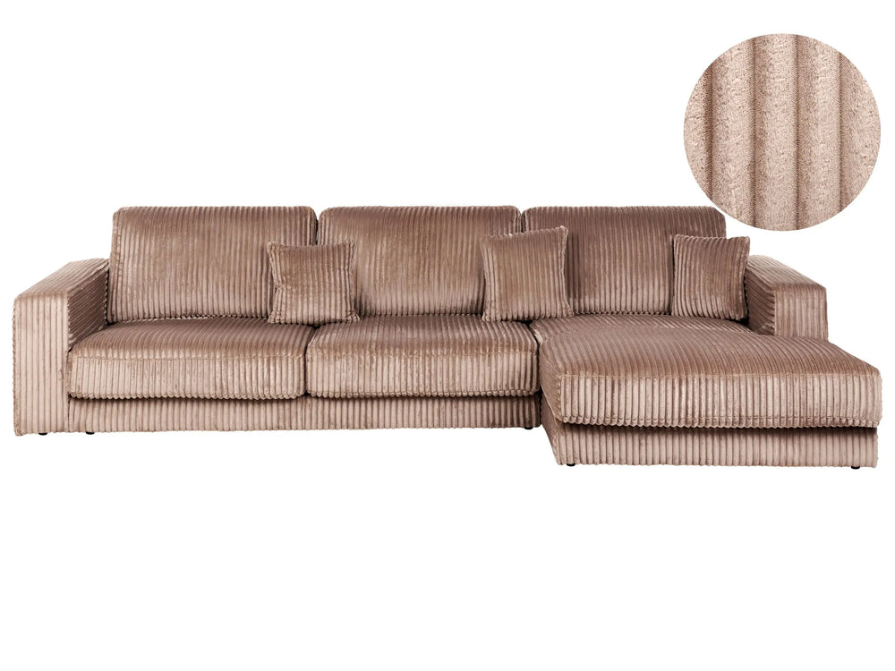 Left Hand 4 Seater Corner Sofa Light Brown Jumbo Corduroy Upholstered Track Armrests Additional Cushions Minimalistic Modern Style Beliani