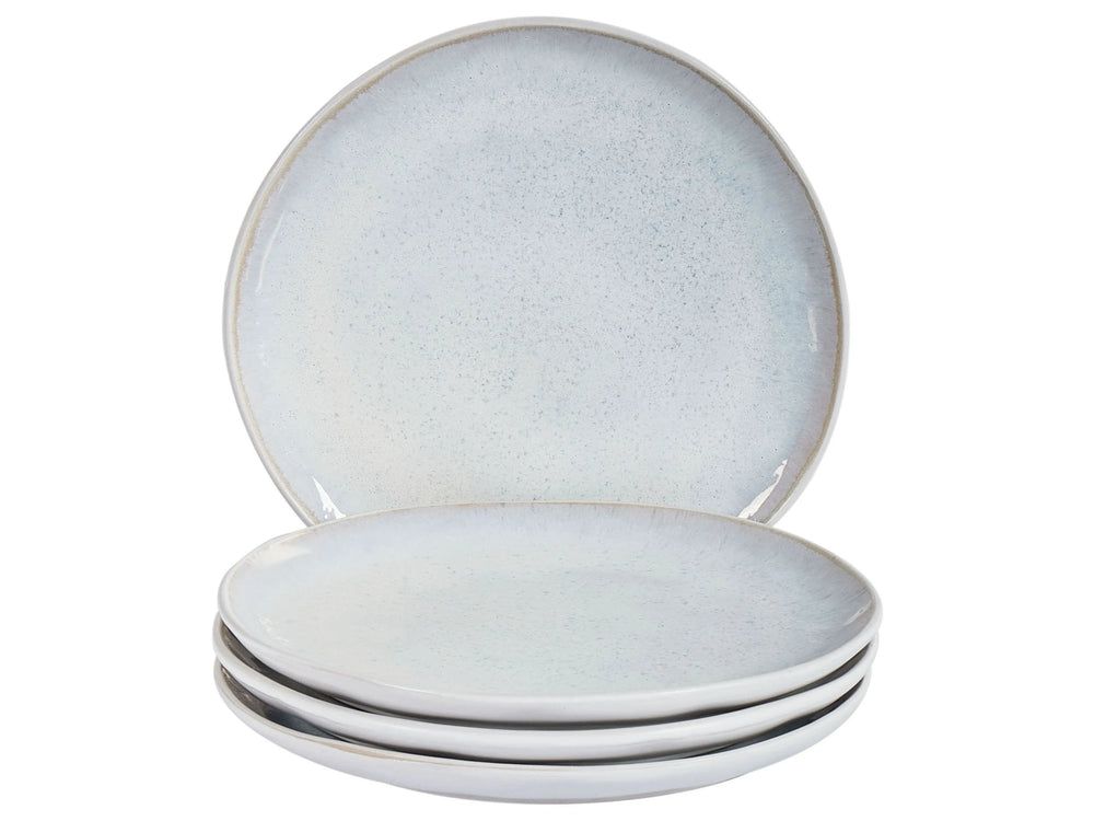 Set of 4 Side Plates Light Grey Stoneware Kaolin Handmade Reactive Glaze Finish Dessert Plate Kitchen Dining Room Beliani