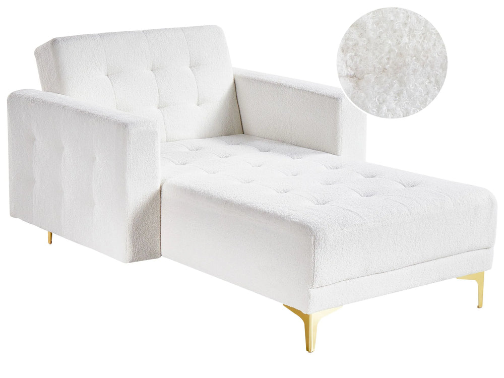 Modern Chaise Longue Off-White Boucle Fabric Gold Legs Reclining Quilted Daybed Living Room Beliani