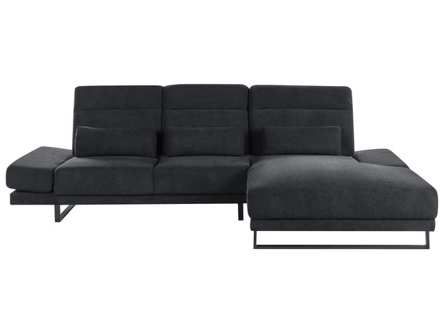 Left Hand Corner Sofa Black Polyester Upholstery Steel Legs Adjustable Armrests and Backrest Living Room Furniture Beliani