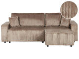Left Corner Sofa Light Brown Fabric Cord Upholstered with Sleeper Function Pull Out Pet Friendly Cushioned Back Beliani