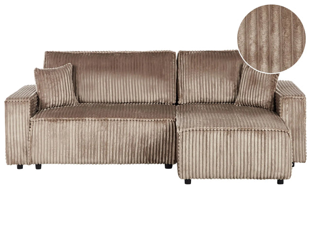 Left Corner Sofa Light Brown Fabric Cord Upholstered with Sleeper Function Pull Out Pet Friendly Cushioned Back Beliani is backordered and will ship as soon as it is back in stock.