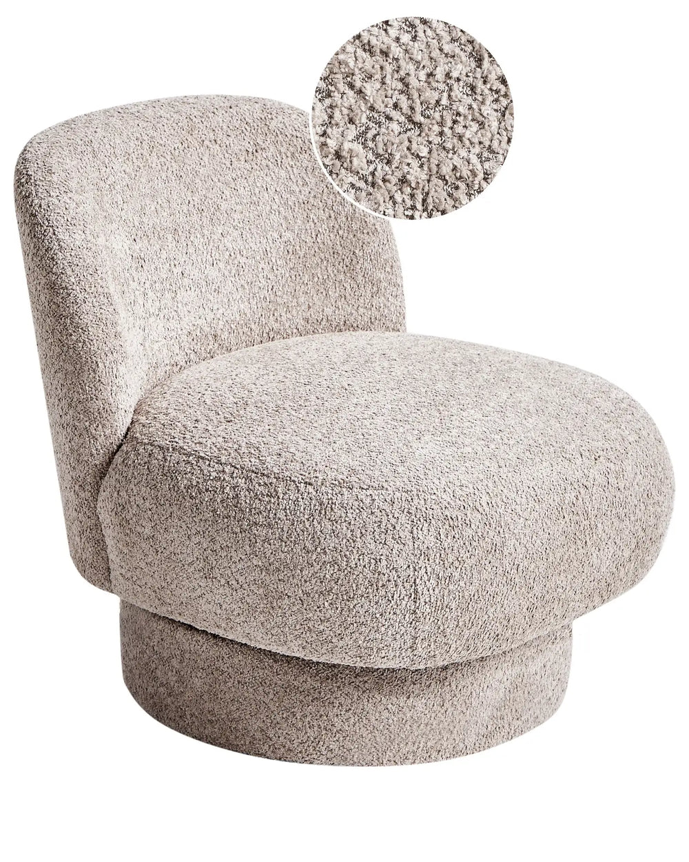 Swivel Armchair Beige Boucle Upholstery Club Chair Curved Backrest Retro Beliani