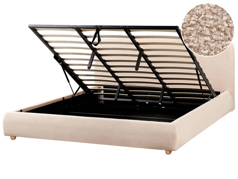 Storage Bed Beige Boucle Polyester Fabric EU Super King Size 6ft Minimalist Modern Design Ottoman Storage Beliani