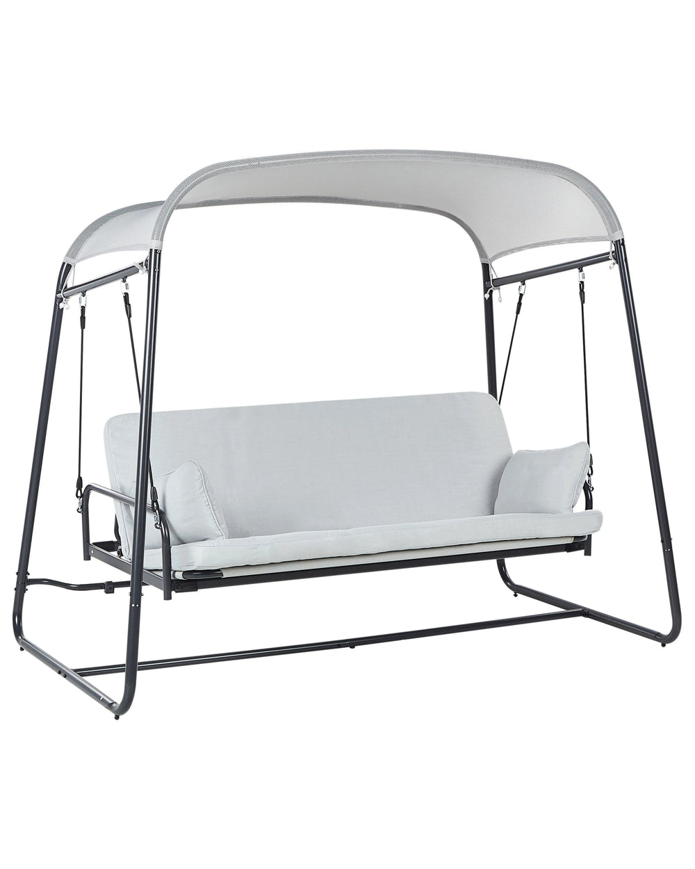 Patio Swing Light Grey Mesh Steel Frame 3 Seater Outdoor Water Repellent Beliani