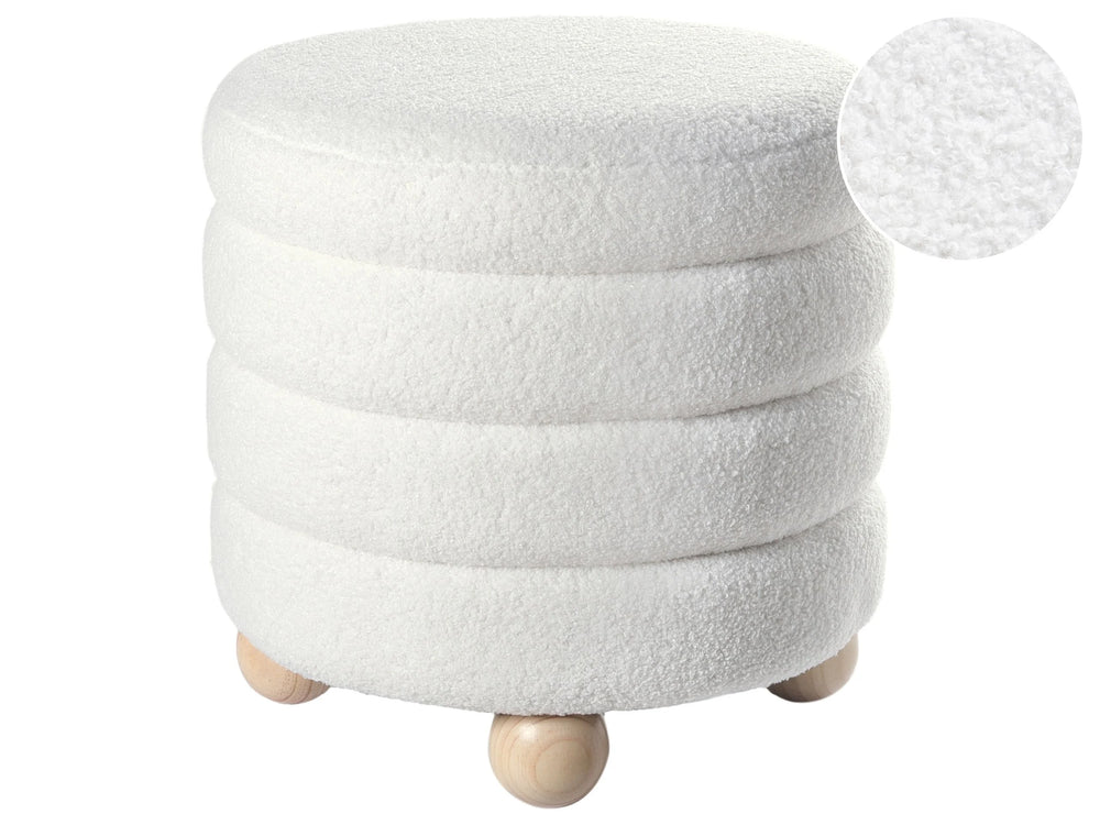 Pouffe Off-White Teddy Boucle Upholstery Pine Wood Legs Footstool Home Accessories Living Room Beliani