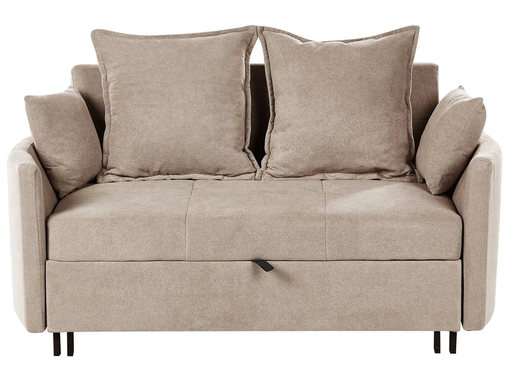 2 Seater Sofa Bed Taupe Sleeping Function Profiled Armrests Beliani