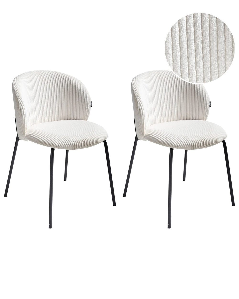 Set of 2 Dining Chairs Off-White Corduroy Upholstery With Rounded Backrest Retro Beliani