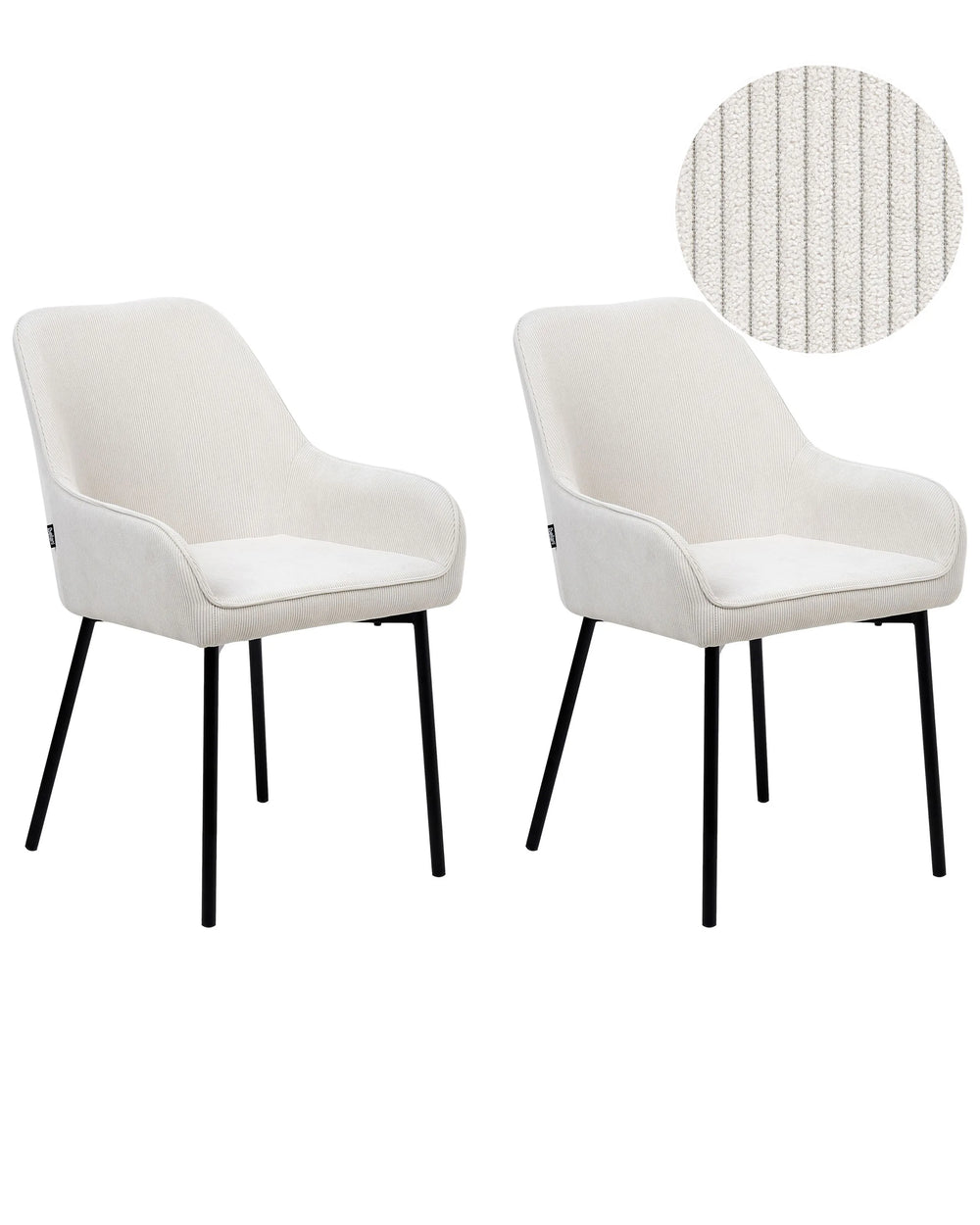 Set of 2 Dining Room Chairs Off-White Corduroy Fabric Upholstered Seat Black Metal Legs Modern Style Beliani