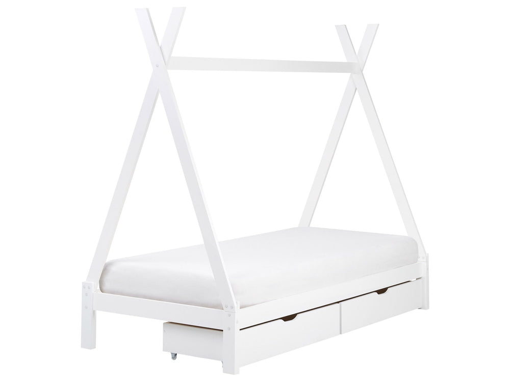 Kids Teepee Bed White Pine EU Single Bed Frame with Slats and Drawers Beliani
