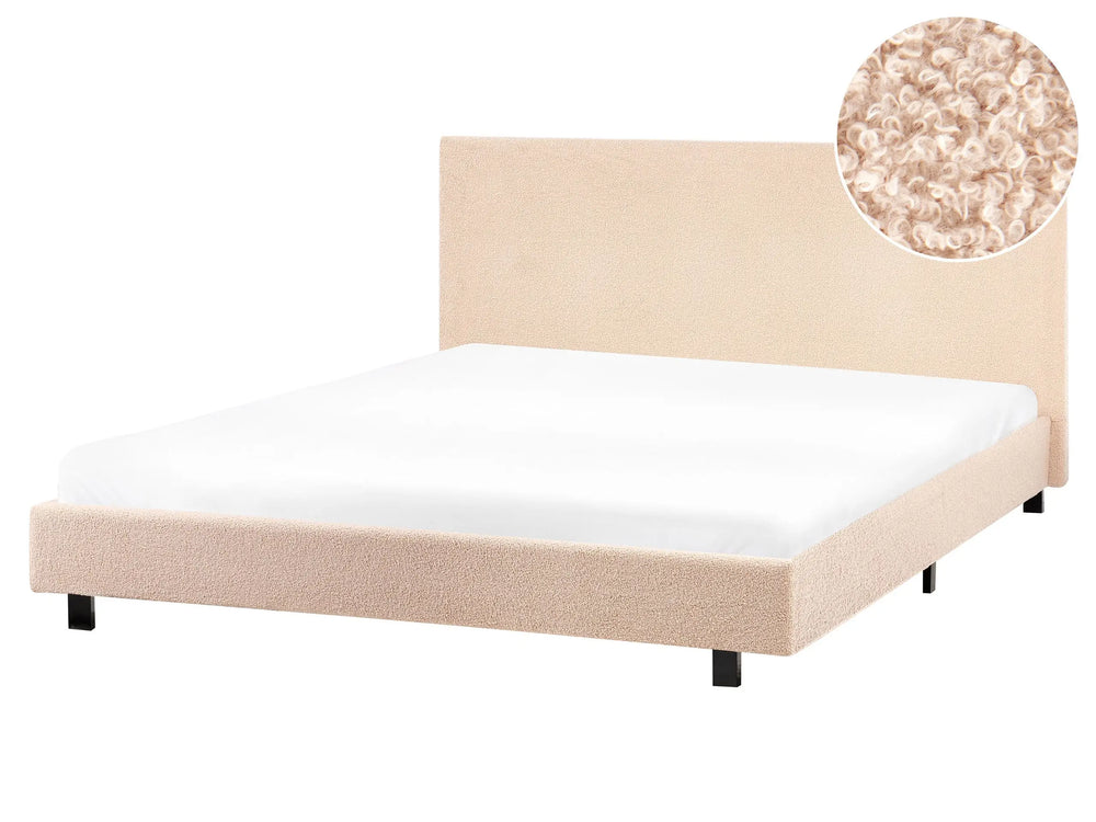 Slatted Bed Frame Beige Boucle EU King Size 5ft3 Modern Design Beliani