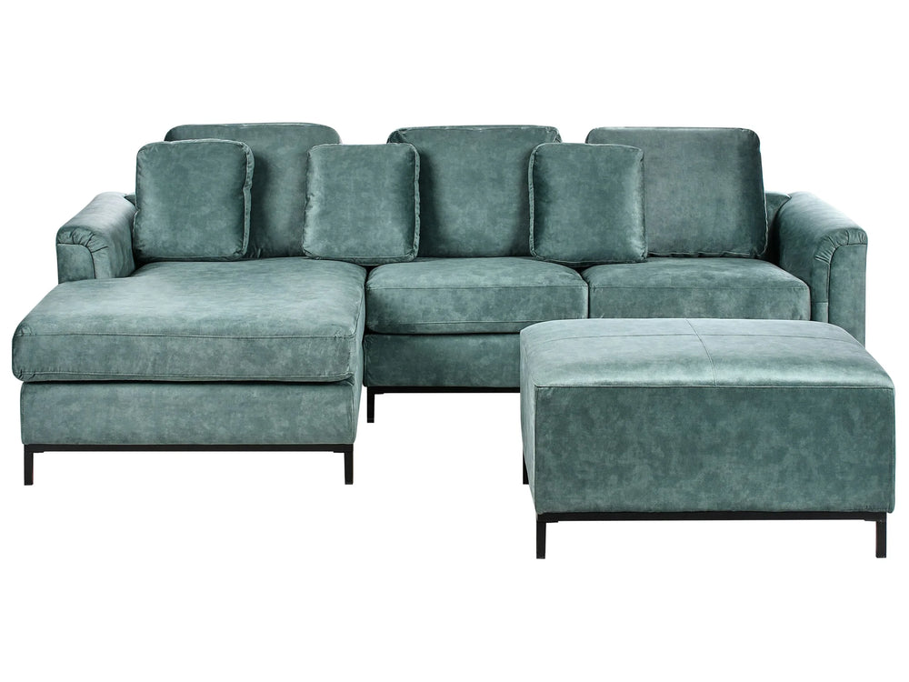 Velvet Corner Sofa with Ottoman Teal Blue Water-Repellent Pet-Friendly Fabric Upholstered L-Shape Right-Hand Orientation Beliani is backordered and will ship as soon as it is back in stock.