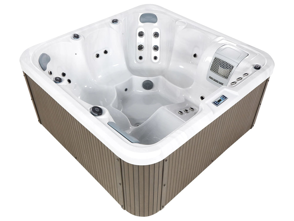 Hot Tub White Acrylic 200 x 200 cm 33 Jets Brown Exterior Panels with LED Heating Beliani is backordered and will ship as soon as it is back in stock.