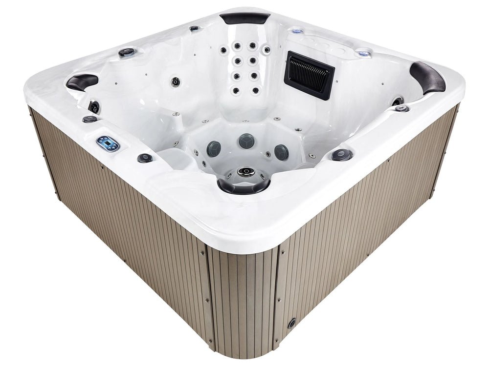 Hot Tub White Acrylic 225 x 225 cm 55 Jets Brown Exterior Panels with LED Heating Beliani is backordered and will ship as soon as it is back in stock.