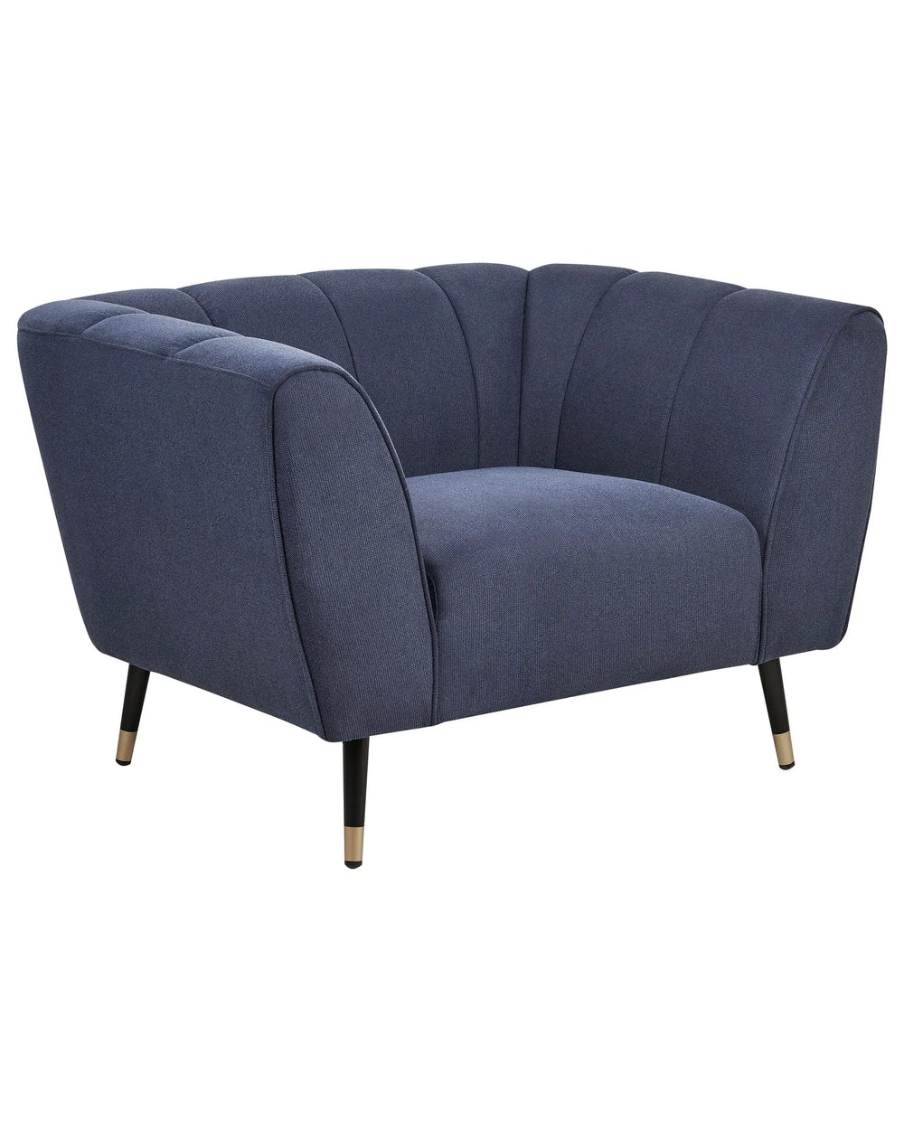 Armchair Dark Blue Fabric Upholstery Deep Wide Seat Low Bakcrest Modern Cosy Beliani