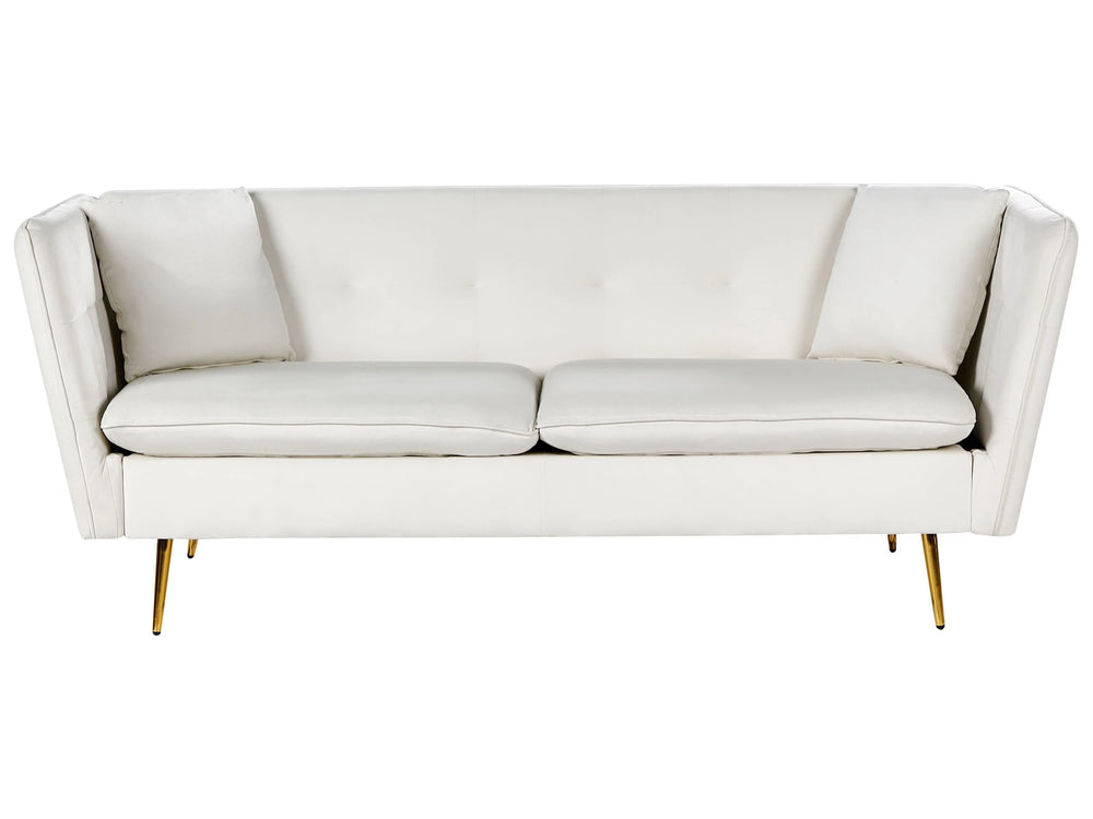 3 Seater Sofa Off-White Velvet Fabric Upholstery Button Tufted with Gold Legs Beliani is backordered and will ship as soon as it is back in stock.