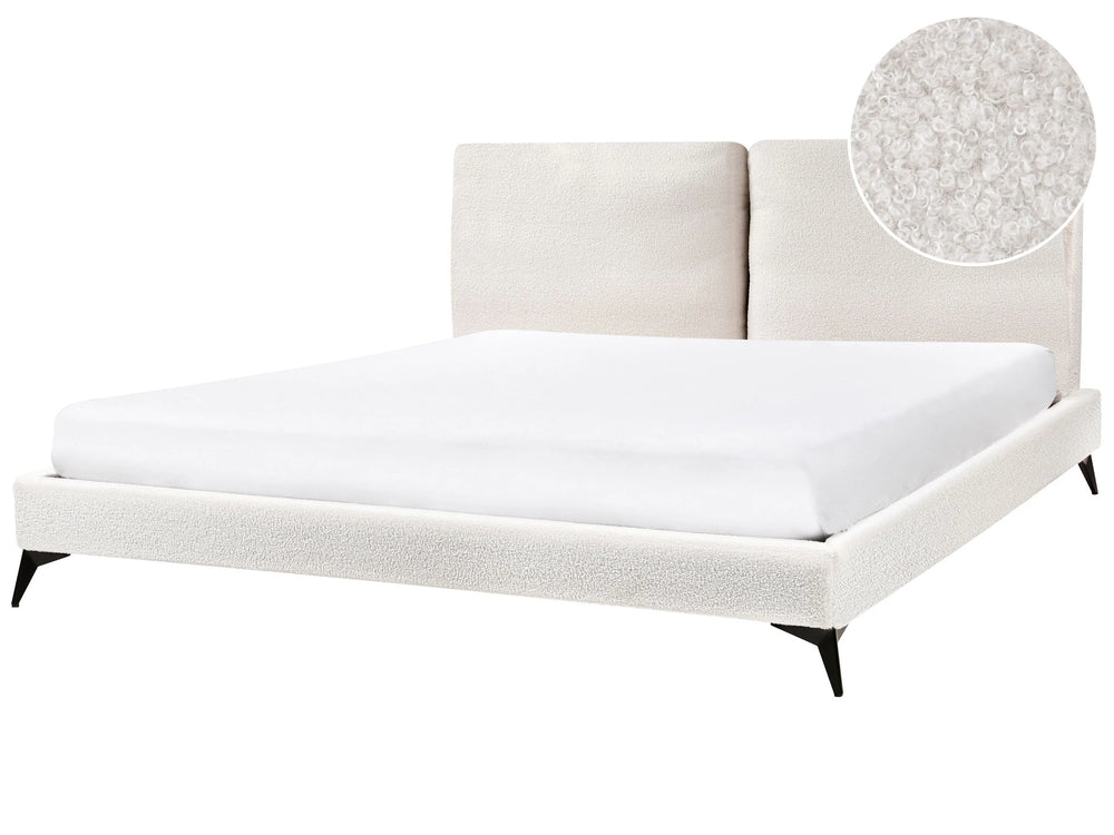 EU Super King Size Panel Bed Off White Boucle Fabric 6ft Slatted Base with Padded Headboard Upholstered Modern Design Beliani