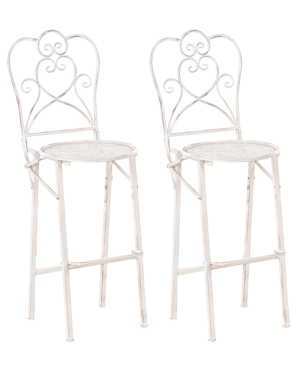 Set of 2 Garden Bar Chairs Light Beige Iron Foldable Distressed Metal Outdoor UV Rust Resistance French Retro Style Beliani