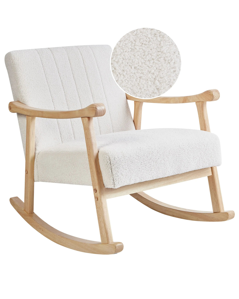 Rocking Armchair Off-White Boucle Upholstery Rubberwood Legs with Armrests Living Room Nursery Beliani